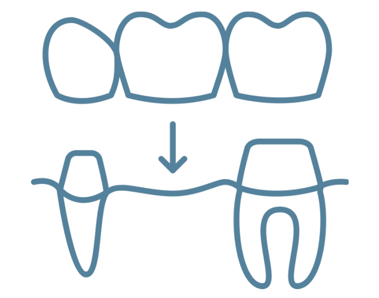 - Lorsque la dent est manquante, il s'agit d'une prothèse fixées sur les dents voisines pour combler l'espace vide.